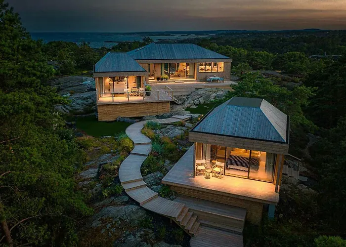 这栋别墅距离Rundvik有5分钟车程,为客人提供住所。 在露台上可以欣赏到大海美景。